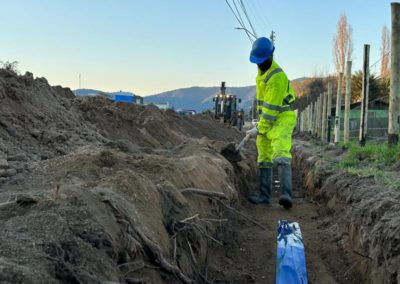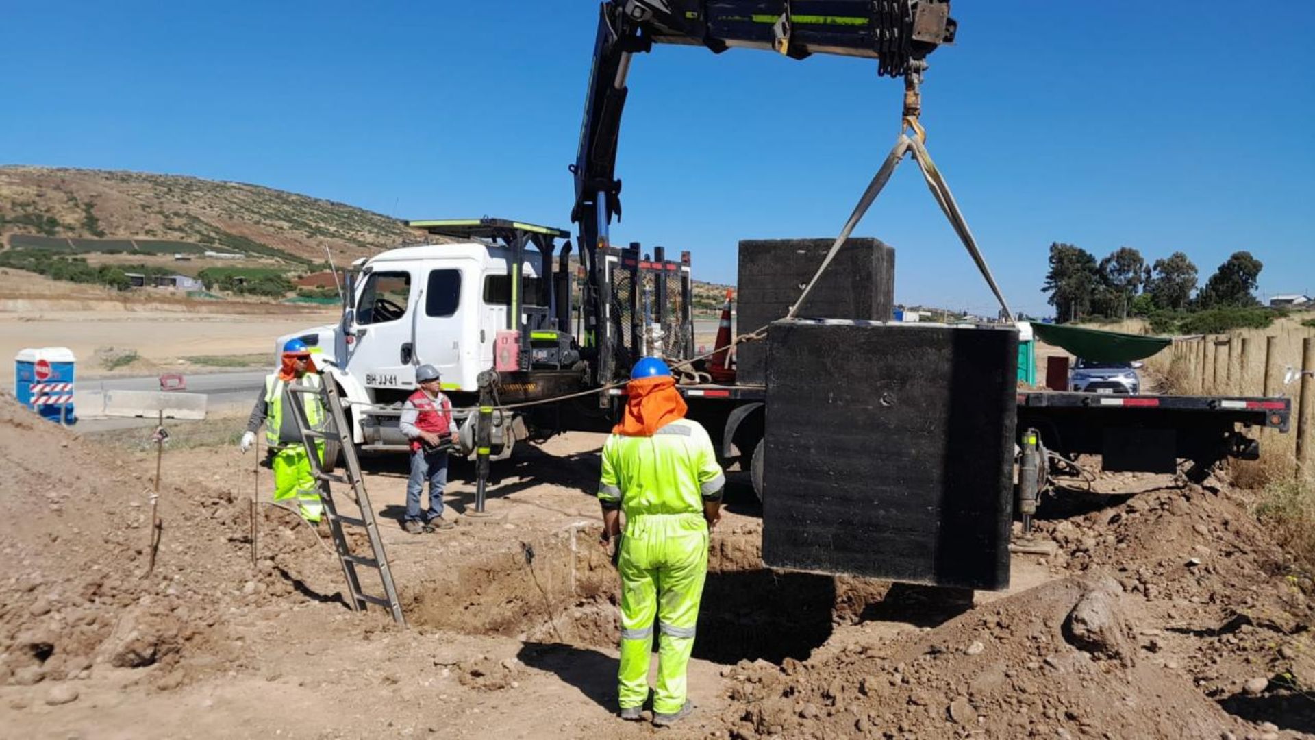 Más de 14 kilómetros de tubería de pvc cuya finalidad es desplazar matrices de los APR afectados por las obras de ampliación de la carretera de la fruta. Trabajos desarrollados entre la 6ª Región y la Región metropolitana. Cliente Sacyr.